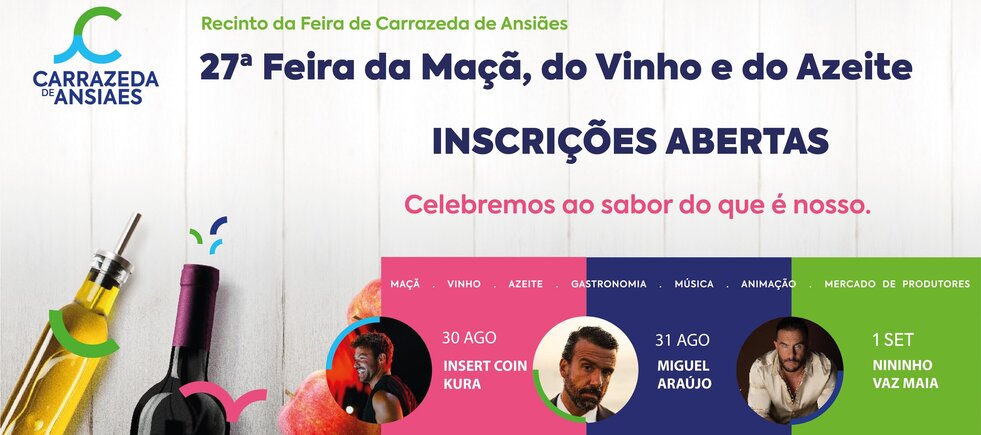 INSCRIÇÕES ABERTAS - EXPOSITORES, BARES E TASQUINHAS - 27ª FEIRA DA MAÇÃ, DO VINHO E DO AZEITE