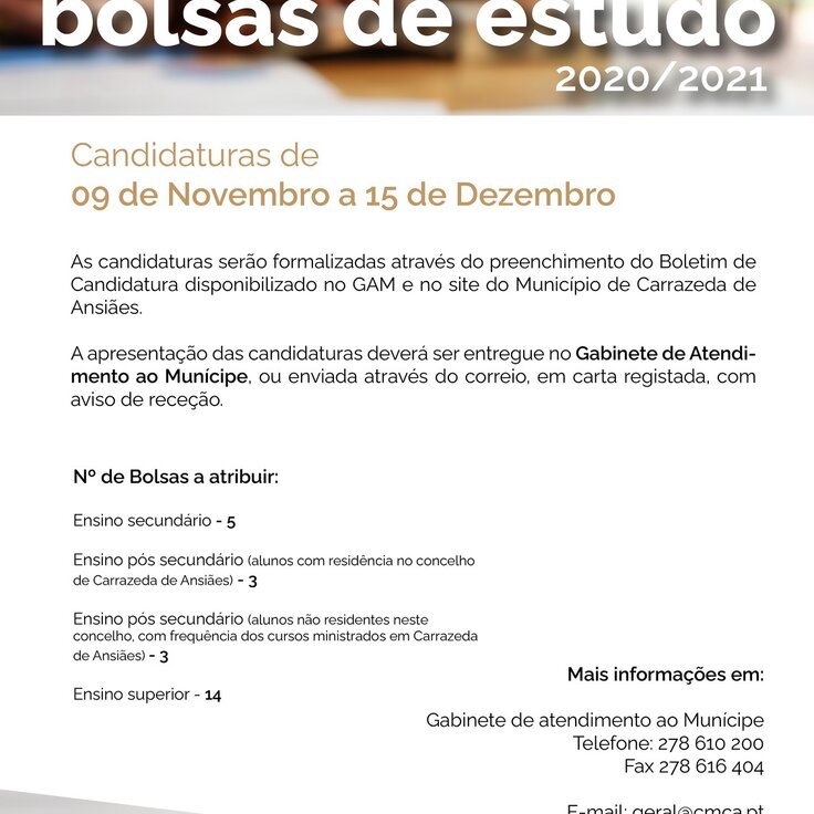 Concurso Aberto para a atribuição de Bolsas de Estudo, ano letivo 2020/2021