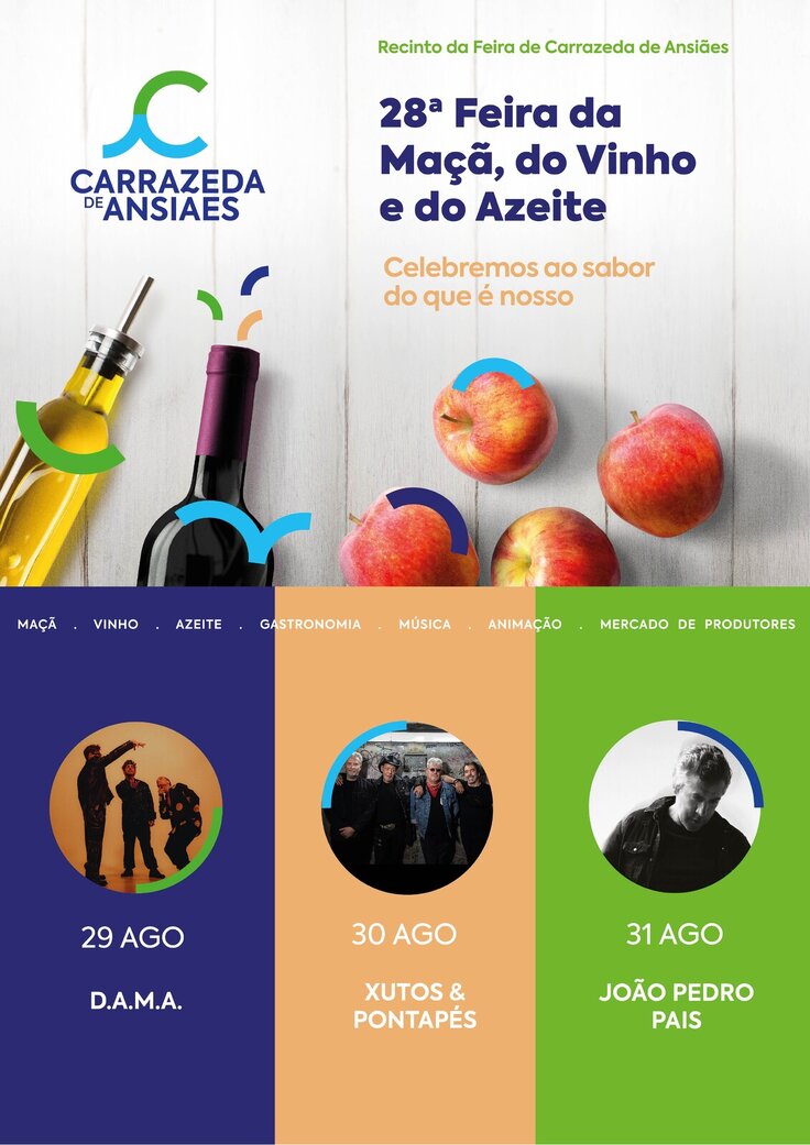 Em 2025 a 28ª Feira da Maçã, do Vinho e do Azeite vai realizar-se no Recinto da Feira de Carrazeda de Ansiães entre os dias 29 a 31 de Agosto. A edição deste ano tem como cabeças de cartaz, os D.A.M.A, no dia 29, os Xutos e Pontapés, no dia 30 e o João Pedro Pais, no dia 31 de agosto.