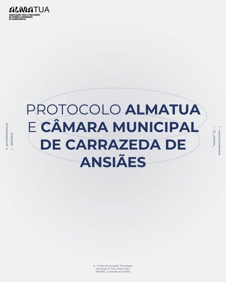 Neste sentido, emergiu a necessidade de realizar um 𝑷𝒓𝒐𝒕𝒐𝒄𝒐𝒍𝒐 𝒅𝒆 𝑪𝒐𝒐𝒑𝒆𝒓𝒂𝒄̧𝒂̃𝒐 𝒄𝒐𝒎 𝒂 𝑪𝒂̂𝒎𝒂𝒓𝒂 𝑴𝒖𝒏𝒊𝒄𝒊𝒑𝒂𝒍 𝒅𝒆 𝑪𝒂𝒓𝒓𝒂𝒛𝒆𝒅𝒂 𝒅𝒆 𝑨𝒏𝒔𝒊𝒂̃𝒆𝒔, onde a AlmaTua disponibiliza 𝒔𝒆𝒓𝒗𝒊𝒄̧𝒐𝒔 no âmbito da 𝒔𝒂𝒖́𝒅𝒆 𝒎𝒆𝒏𝒕𝒂𝒍, para todos/as, desde que, 𝒓𝒆𝒔𝒊𝒅𝒆𝒏𝒕𝒆𝒔 no concelho de 𝑪𝒂𝒓𝒓𝒂𝒛𝒆𝒅𝒂 𝒅𝒆 𝑨𝒏𝒔𝒊𝒂̃𝒆𝒔 e, com comprovadas 𝒇𝒓𝒂𝒈𝒊𝒍𝒊𝒅𝒂𝒅𝒆𝒔 𝒔𝒐́𝒄𝒊𝒐 𝒆𝒄𝒐𝒏𝒐́𝒎𝒊𝒄𝒂𝒔.