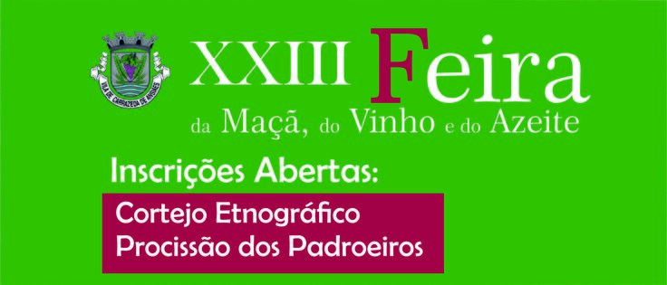 O Município de Carrazeda de Ansiães informa que estão abertas, até ao dia 30 de Julho, as inscrições para a Procissão dos Padroeiros e para o Cortejo Entográfico, atividades integradas na vigésima terceira edição da Feira da Maçã, do Vinho e do Azeite.