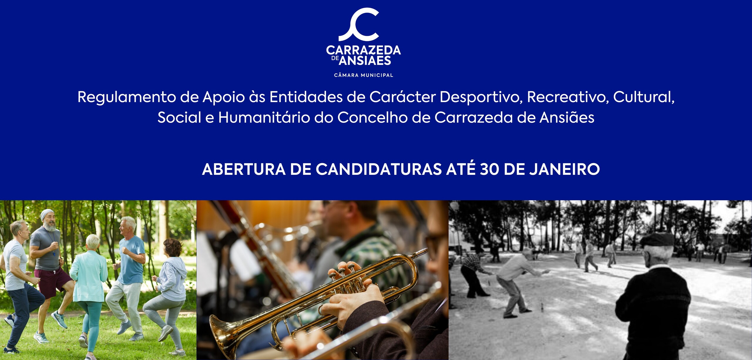 O Município de Carrazeda de Ansiães informa que estão abertas até ao próximo dia 30 de janeiro de 2026, as candidaturas para atribuição de Subsídios e Apoios às Entidades de Carácter Desportivo, Recreativo, Cultural, Social e Humanitário do Concelho de Carrazeda de Ansiães.