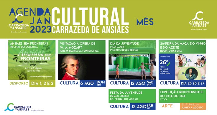 A juventude tem um destaque especial este mês, já que se celebra em agosto o Dia Internacional da Juventude. Os jogos do Ansiães Sem Fronteiras realizam-se de 1 a 3 de agosto na Piscina Municipal Descoberta, 3 dias com 10 equipas, muita prova, animação e uma batalha fotográfica que decorre na página de Facebook da autarquia.