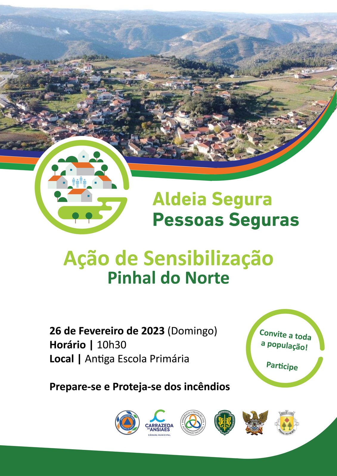 No âmbito do Programa "Aldeia Segura, Pessoas Seguras" o Serviço Municipal de Proteção Civil de Carrazeda de Ansiães promove, no próximo domingo, 26 de fevereiro, uma ação de sensibilização e apresentação do programa a implementar em Pinhal do Norte, pelas 10h30 na antiga Escola Primária, e em Amedo pelas 14h00 na Associação de Amedo, iniciativa que tem como objetivo otimizar as intervenções das entidades competentes e sensibilizar a população local.