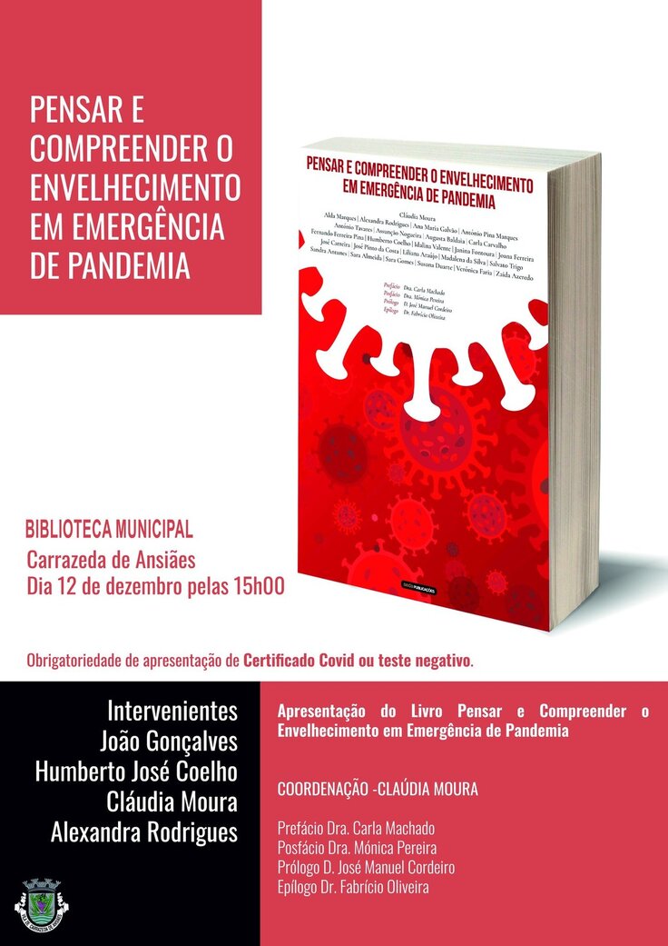 O livro "Pensar e Compreender o Envelhecimento em Emergência de Pandemia" será apresentado no próximo domingo, dia 12 de dezembro, pelas 15h00 na Biblioteca Municipal de Carrazeda de Ansiães.