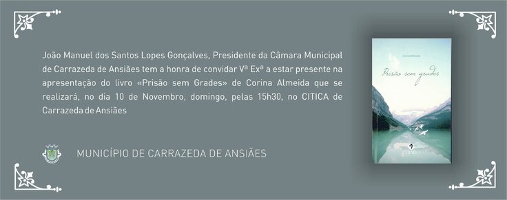Convite para a apresentação do Livro “Prisão sem Grades” de Corina Almeida.
