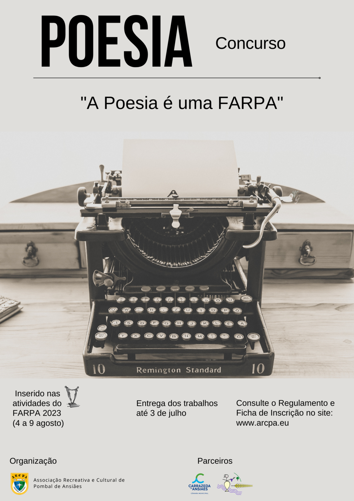 “A poesia é uma farpa” é o mote do concurso anual de poesia lançado pela Associação Recreativa e Cultural de Pombal de Ansiães e inserida no programa de atividades do FARPA 2023.