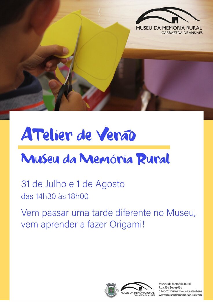 De 31 de julho a 1 de agosto, das 14h30 às 18h00, o Atelier de Verão do Museu da Memória Rural é sobre o Origami, a arte tradicional japonesa de dobrar o papel, criando representações de determinados seres ou objetos.