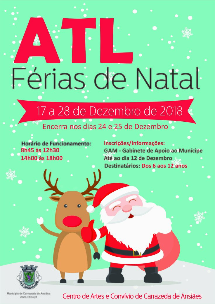 O Município de Carrazeda de Ansiães informa que se encontram abertas, no Gabinete de Apoio ao Municípe, até ao dia 12 de Dezembro, as inscrições para o ATL de Natal. As inscrições deverão ser efectuadas através do preenchimento da Ficha de Inscrição anexa.