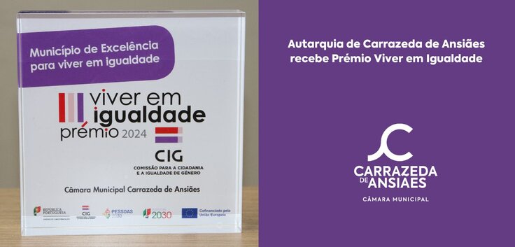 A Autarquia de Carrazeda de Ansiães foi agraciada com o Prémio Viver em Igualdade, uma iniciativa bienal promovida pela Comissão para a Cidadania e Igualdade de Género, no quadro da Estratégia Nacional para a Igualdade e a Não Discriminação (ENIND) – Portugal + Igual.