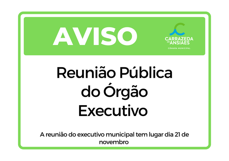 Para efeitos do artigo 6º do Regimento da Câmara Municipal de Carrazeda de Ansiães, torna-se público que a reunião pública do órgão executivo municipal terá lugar no dia 21 do mês em curso, pelas 09h00.
