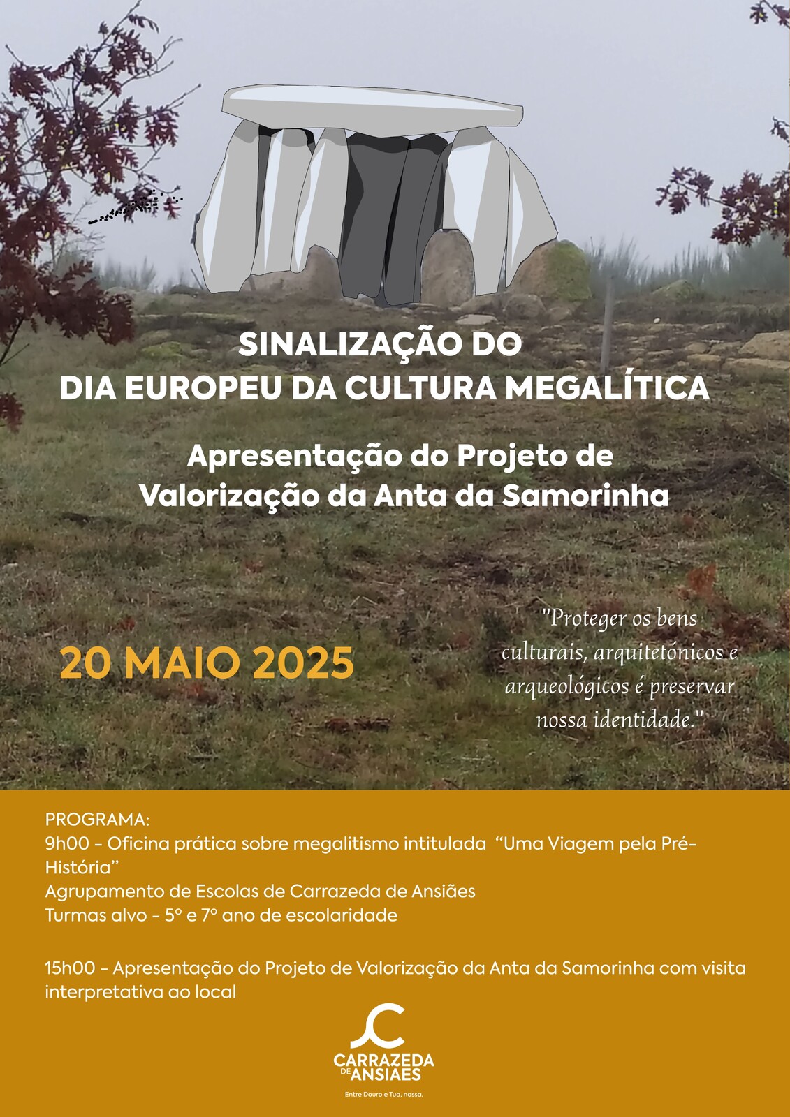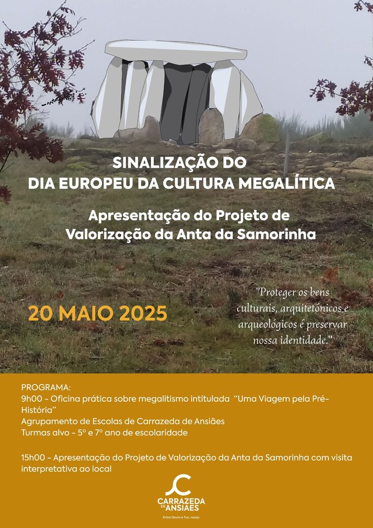- Carrazeda de Ansiães assinala o Dia Europeu da Cultura Megalítica, no dia 20 de maio, com apresentação do projeto de recuperação da Anta da Samorinha.