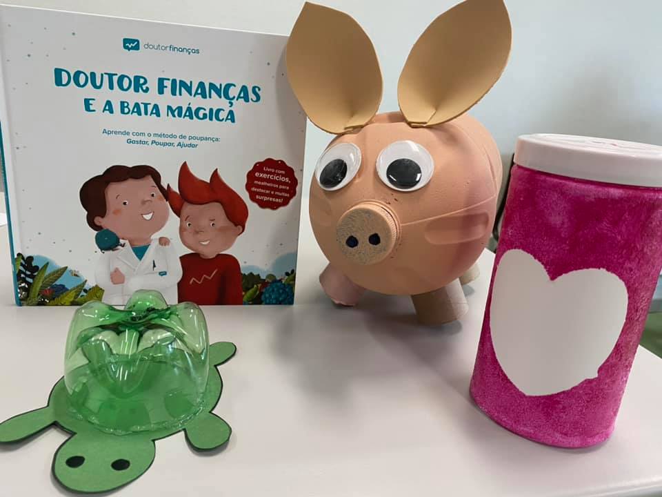 Esta atividade abordou de forma lúdica e com recurso à história “Doutor Finanças e a Bata Mágica” assuntos relacionados com o tema da Literacia Financeira e Educação para o Consumo e teve como objetivos incentivar e elucidar as crianças sobre a importância do poupar assim como fazer a distinção entre o que são bens necessários e bens supérfluos. Foram ainda exemplificados alguns modelos de mealheiros elaborados com materiais reutilizáveis o que permitiu em simultâneo sensibilizar as crianças para a questão do meio ambiente e a importância da reutilização de materiais para reduzir a poluição e as causas do impacto ambiental!