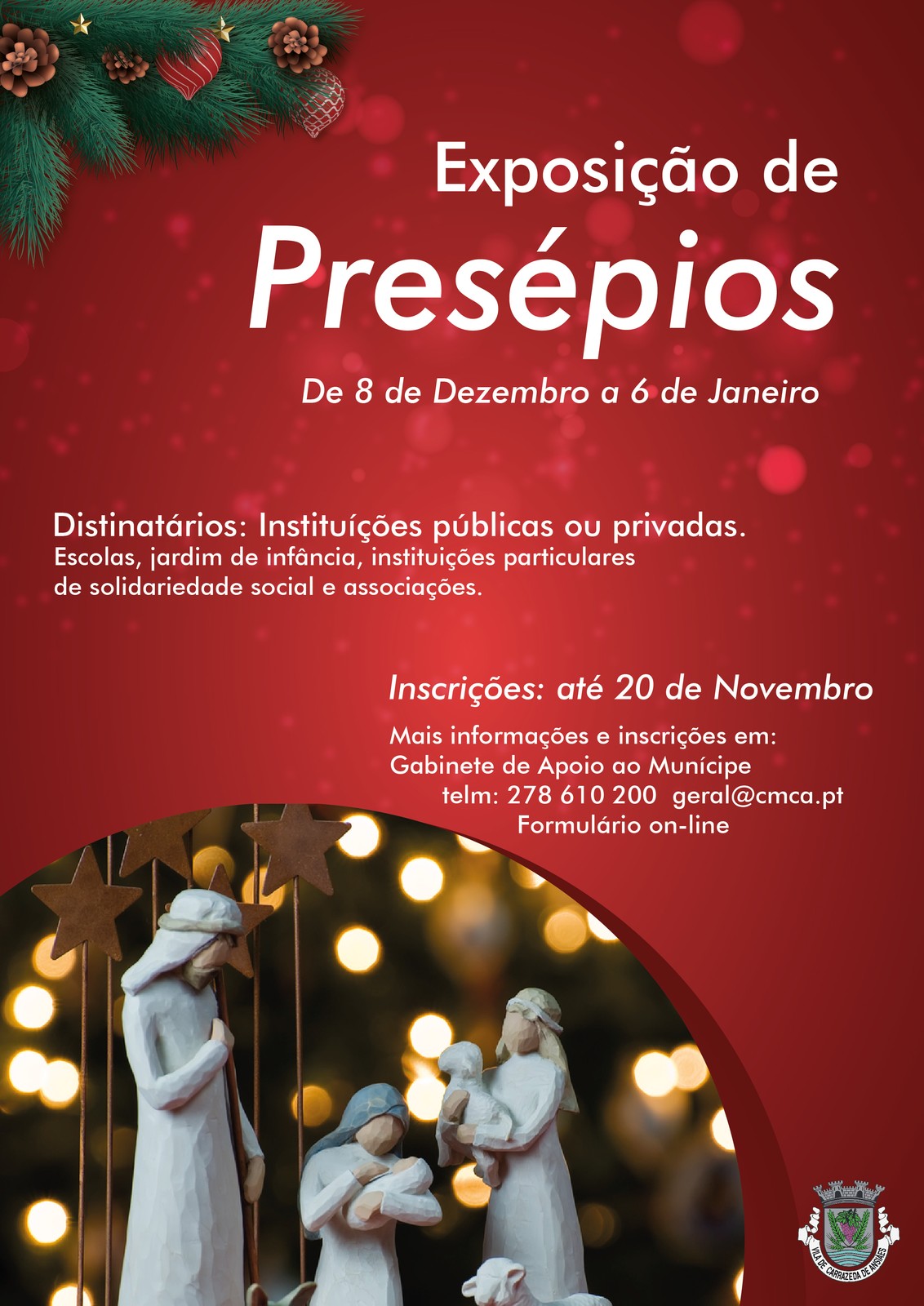 Numa época de solidariedade, entreajuda e de partilha a câmara municipal quer apelar ao espírito criativo e a veia artística das nossas gentes para trazer um pouco de alegria e vivacidade às ruas da vila. Esta ação destina-se a instituições públicas e privadas de solidariedade social, escolas e associações do concelho.