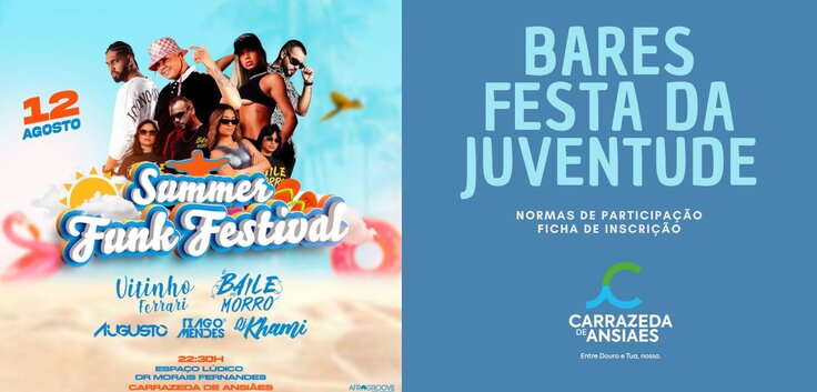 O Município de Carrazeda de Ansiães informa que estão abertas inscrições para os 4 módulos de Venda de Bebidas, no âmbito da realização da Festa da Juventude (SUMMER FUNK FESTIVAL).