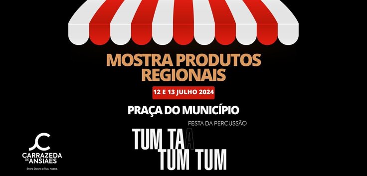 O Município de Carrazeda de Ansiães informa que estão abertas as inscrições para a Mostra de Produtos Regionais que vai decorrer na Praça do Municipio nos dias 12 e 13 de julho, no âmbito do TUM TÁ TUM TUM - FESTA DA PERCUSSÃO.