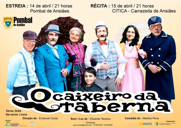 A Associação Cultural e Recreativa de Pombal de Ansiães traz a cena uma nova peça de teatro intitulada “O Caixeiro da Taberna” no sábado, 15 de abril às 21h00 no CITICA.
