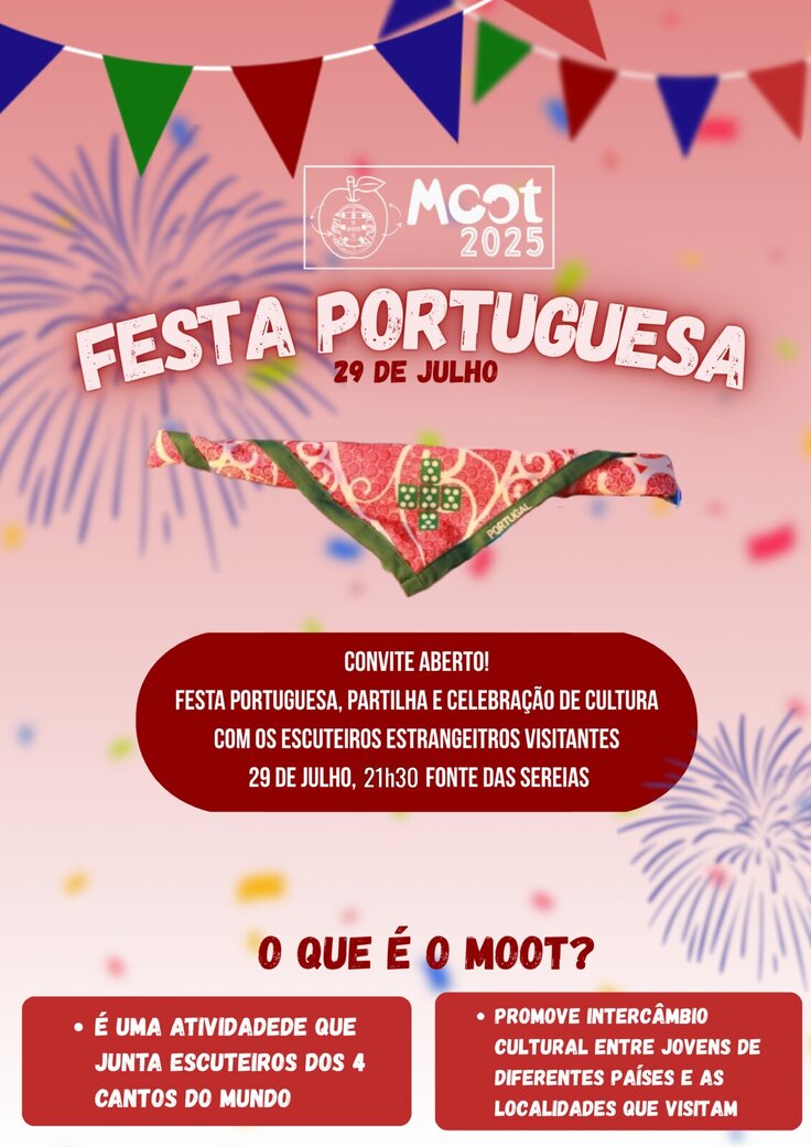 Junta-te a nós para celebrar a cultura e partilhar momentos inesquecíveis com escuteiros estrangeiros de todo o mundo. É um convite aberto a toda a comunidade!