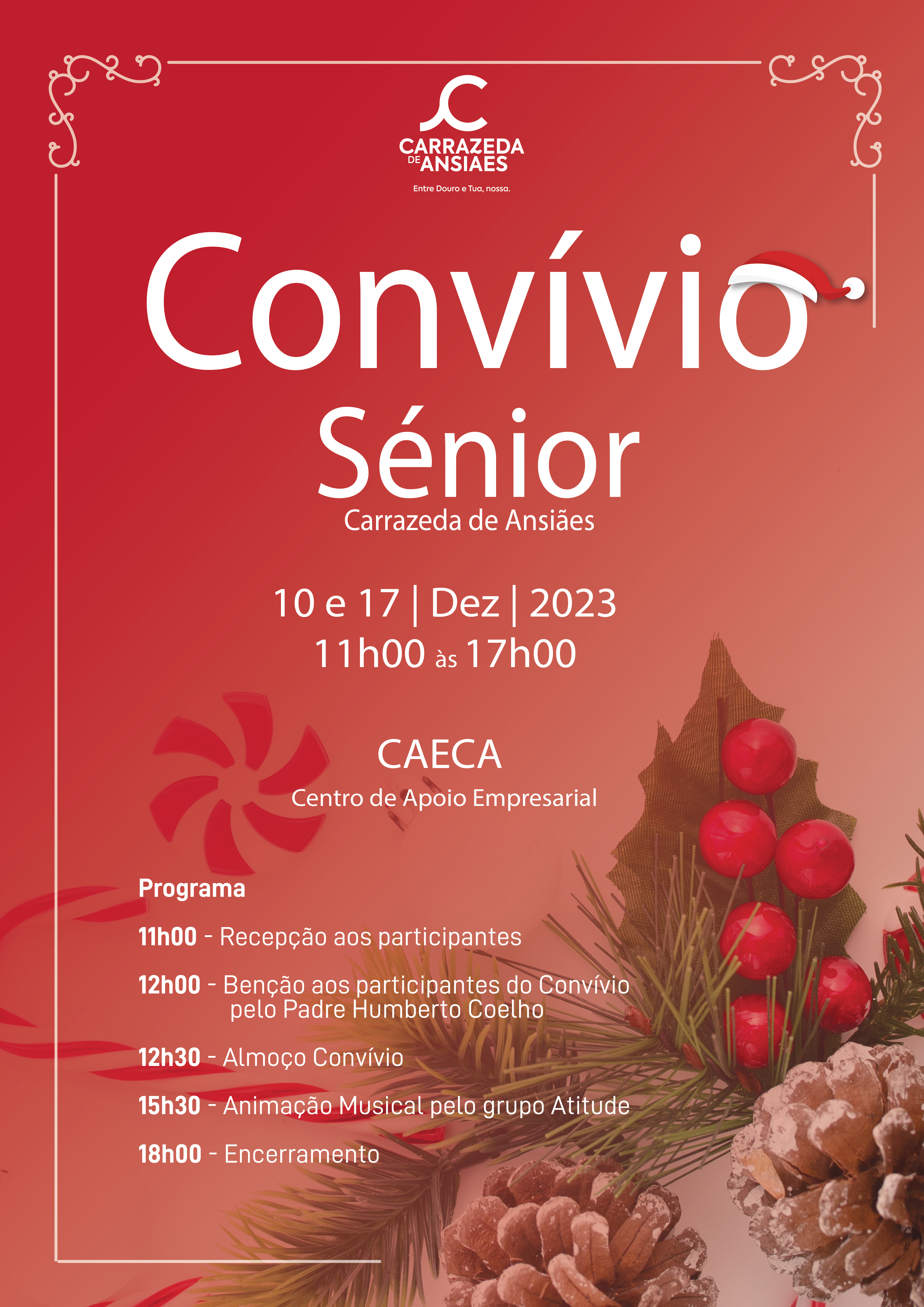 O Convívio Sénio 2022 realiza-se no Centro de Apoio Empresarial de Carrazeda de Ansiães (CAECA), nos domingos, 10 e 17convívio sénior 20223-01 de dezembro.