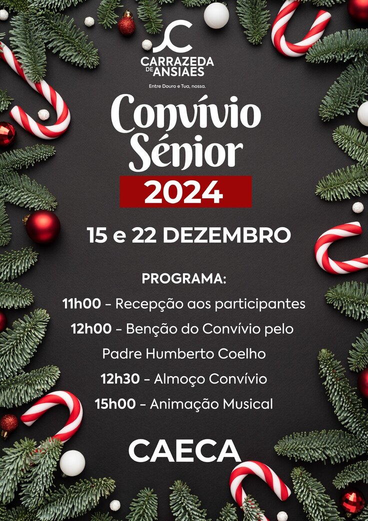 O Convívio Sénio 2024 realiza-se no Centro de Apoio Empresarial de Carrazeda de Ansiães (CAECA) domingo, nos dias 15 e 22 de dezembro, entre as 11h00 e as 17h00.