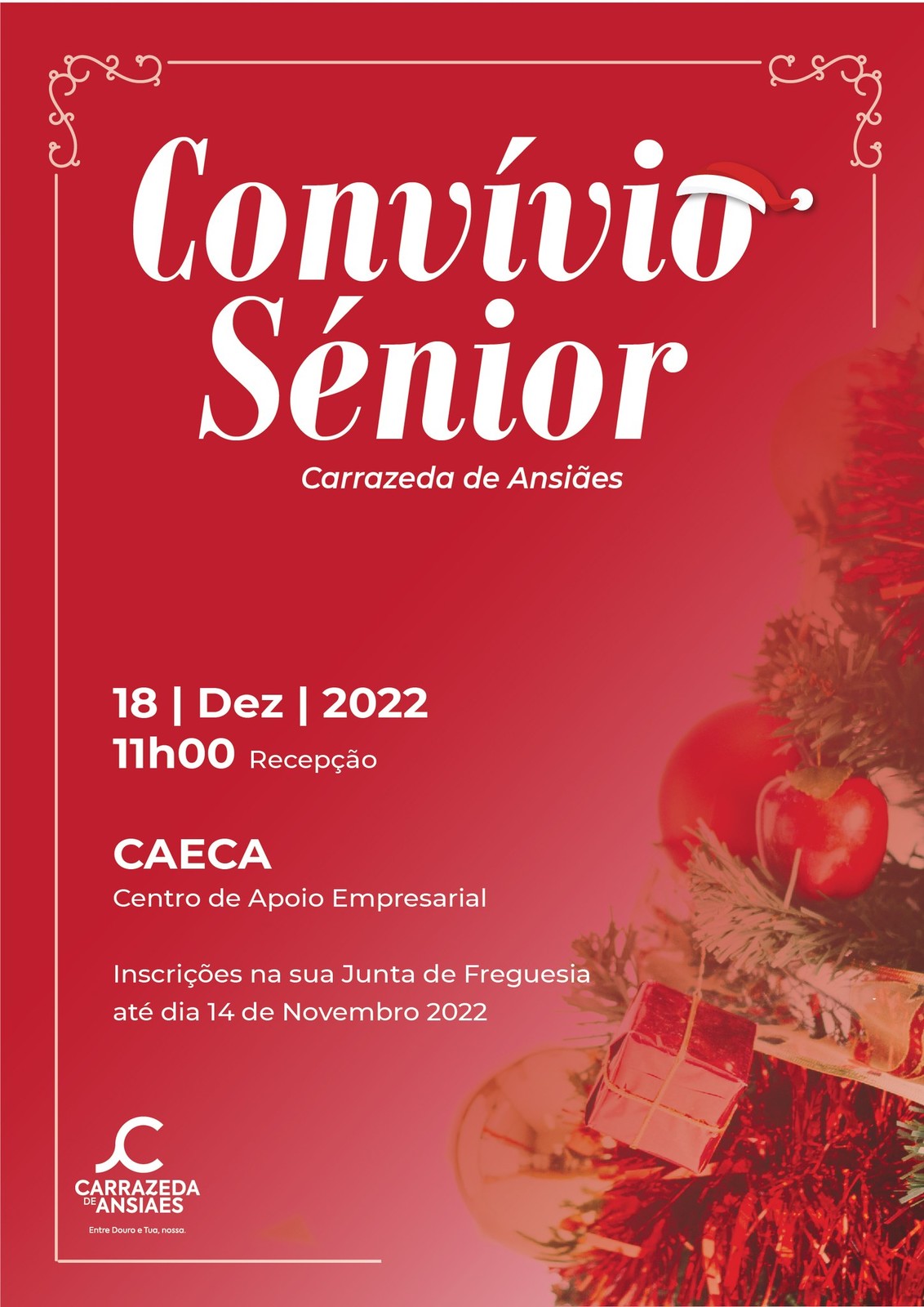 O Convívio Sénio 2022 realiza-se no Centro de Apoio Empresarial de Carrazeda de Ansiães (CAECA) domingo, 18 de dezembro.