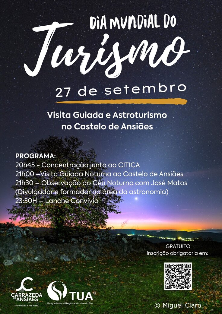 No âmbito das Comemorações do Dia Mundial do Turismo, temos o prazer de convidá-lo(a) a participar numa atividade dedicada ao astroturismo, que lhe permitirá viver uma experiência única de contemplação e descoberta do céu a partir do Castelo de Ansiães, com José Matos, divulgador e formador na área da astronomia.