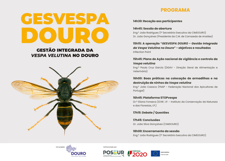 A Comunidade Intermunicipal do Douro (CIMDOURO), integra 19 municípios da região duriense, é promotora do projeto GESVESPA DOURO - Gestão Integrada da Vespa velutina no Douro, projeto esse cofinanciado pelos fundos de investimento POSEUR, Portugal2020 e União Europeia.