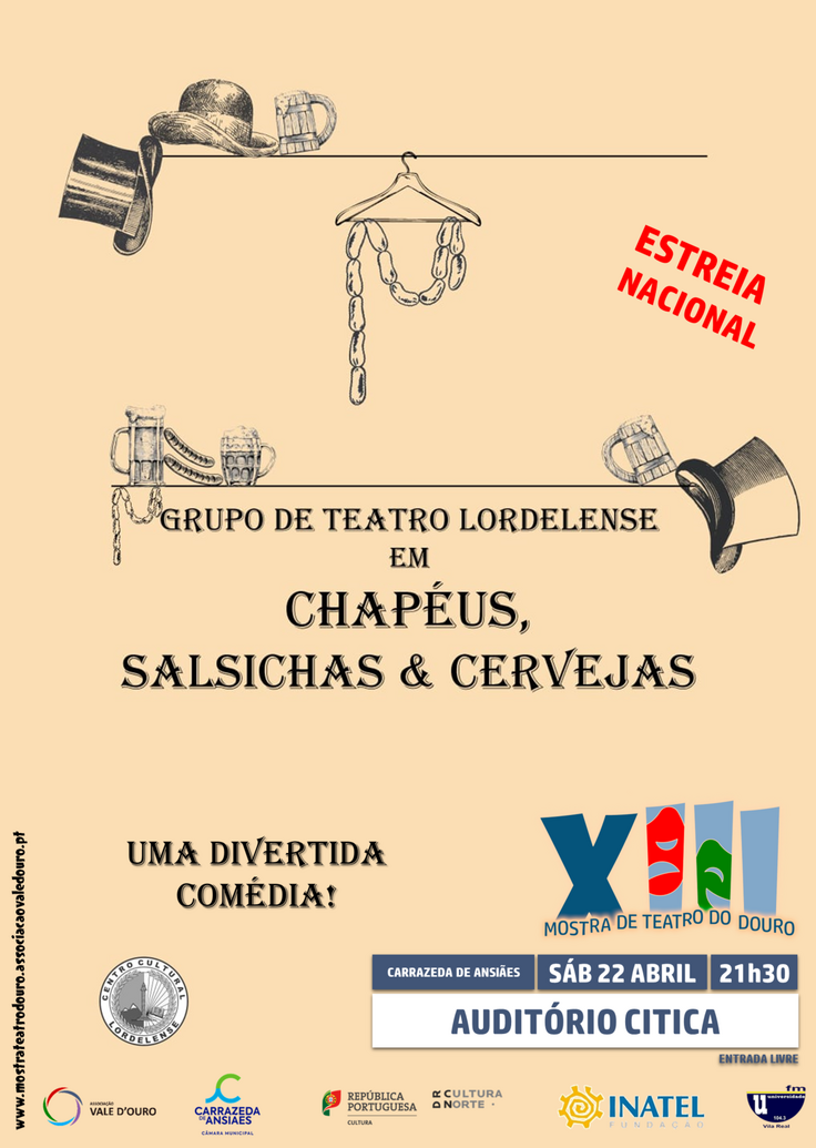 A XIII Mostra de Teatro Douro vai percorrer Trás-os-Montes com uma variedade de peças de teatro e grupos teatrais, em Carrazeda de Ansiães atua dia 22 de abril o Grupo de Teatro do Centro Cultural Lordelense com a peça Chapéus, Salsichas e Cervejas.