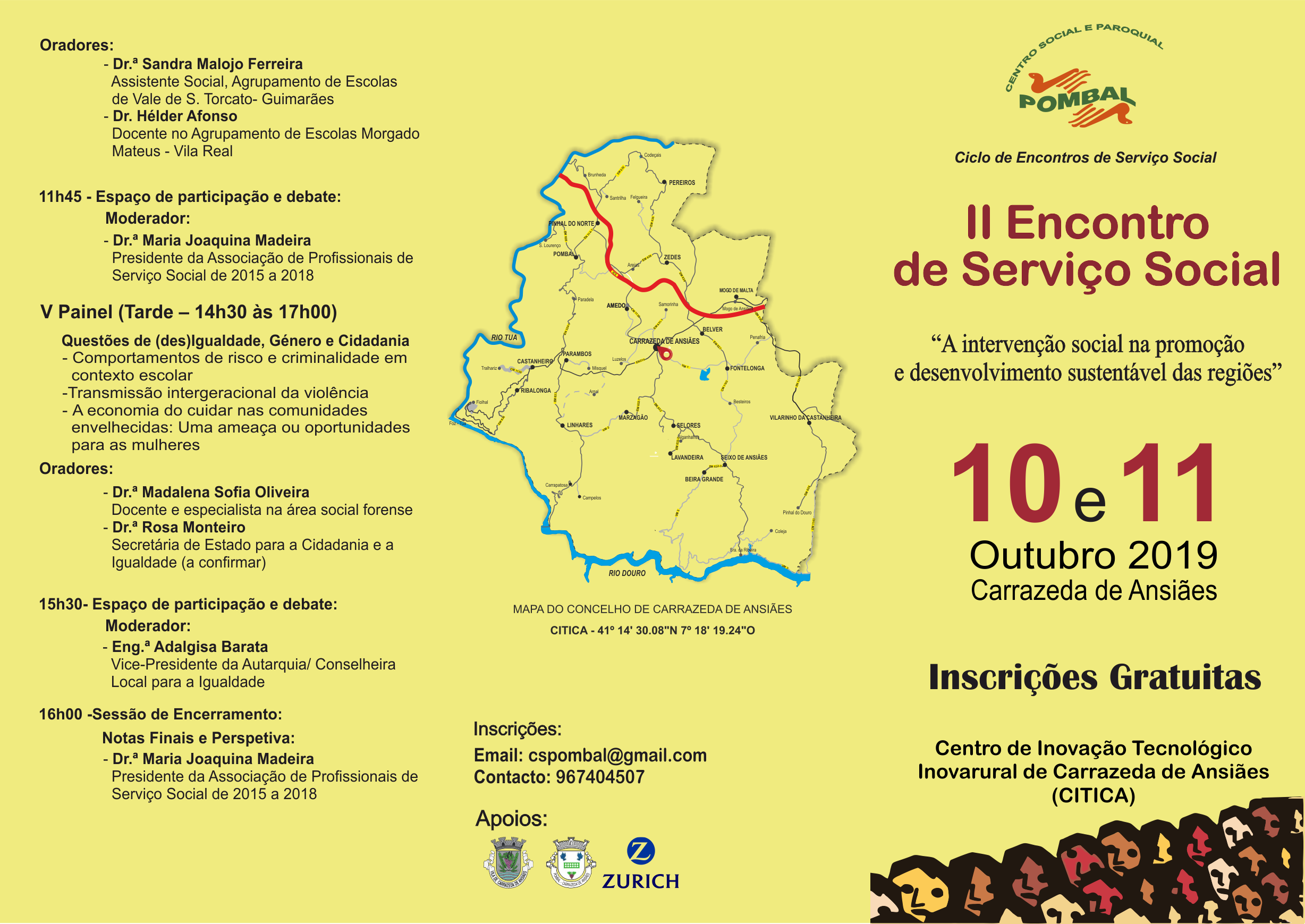 No dia 10 e 11 de outubro vai decorrer o II Encontro de Serviço Social em Carrazeda de Ansiães.