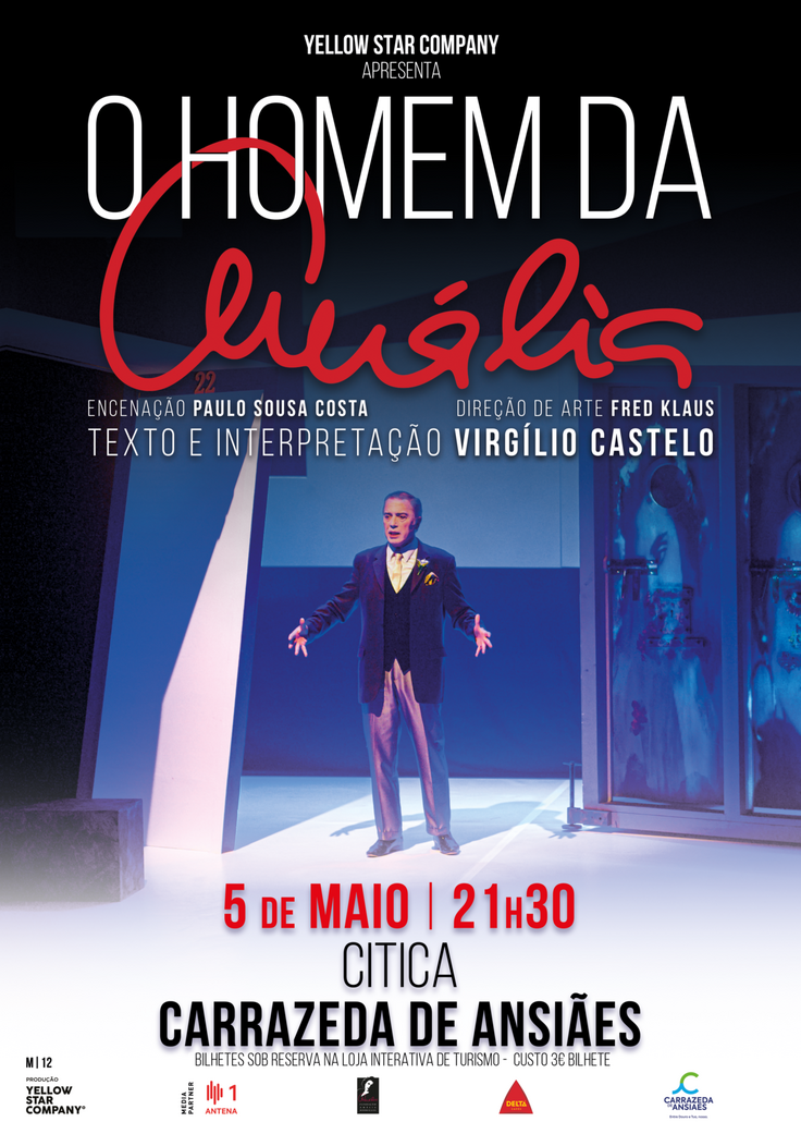No Auditório do CITICA, a peça de teatro “O Homem da Amália”, interpretada por Virgílio Castelo, o espetáculo sobe ao palco no dia 05 de maio.