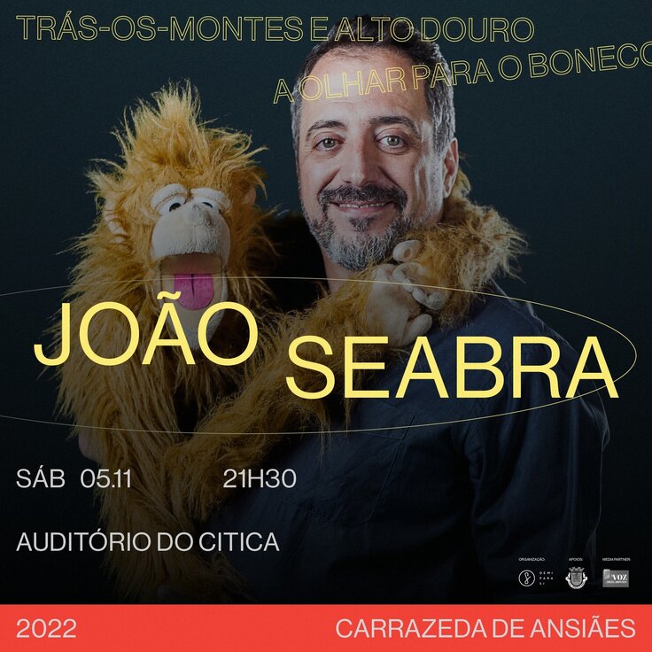 João Seabra e os seus bonecos vão atuar no Auditório do Centro de Inovação Tecnológica Inovarural de Carrazeda de Ansiães (CITICA) sábado dia 5 de novembro pelas 21h30.