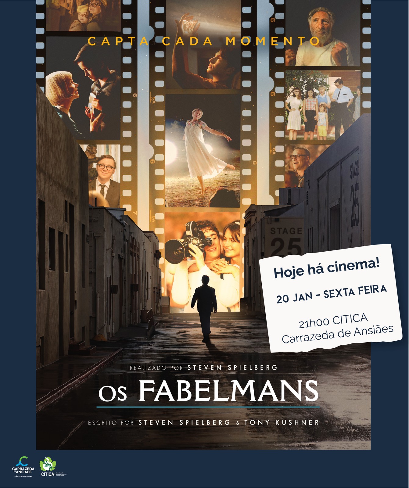 Dirigido por Steven Spielberg, este drama de cariz autobiográfico inspira-se na infância e adolescência do próprio realizador e já vai com cinco nomeações para os globos de ouro. A história passa-se no pós-II Guerra Mundial, quando Sammy Fabelman, começa a usar a câmara 8mm do pai para filmar tudo o que acontece à sua volta. O modo como absorve a realidade através das lentes da sua câmara, assim como a sensibilidade que demonstra na montagem dos filmes, vão fazer dele um grande contador de histórias. Mais tarde, essa exploração dos vários métodos cinematográficos transformou-o num cineasta conceituado em todo o mundo.