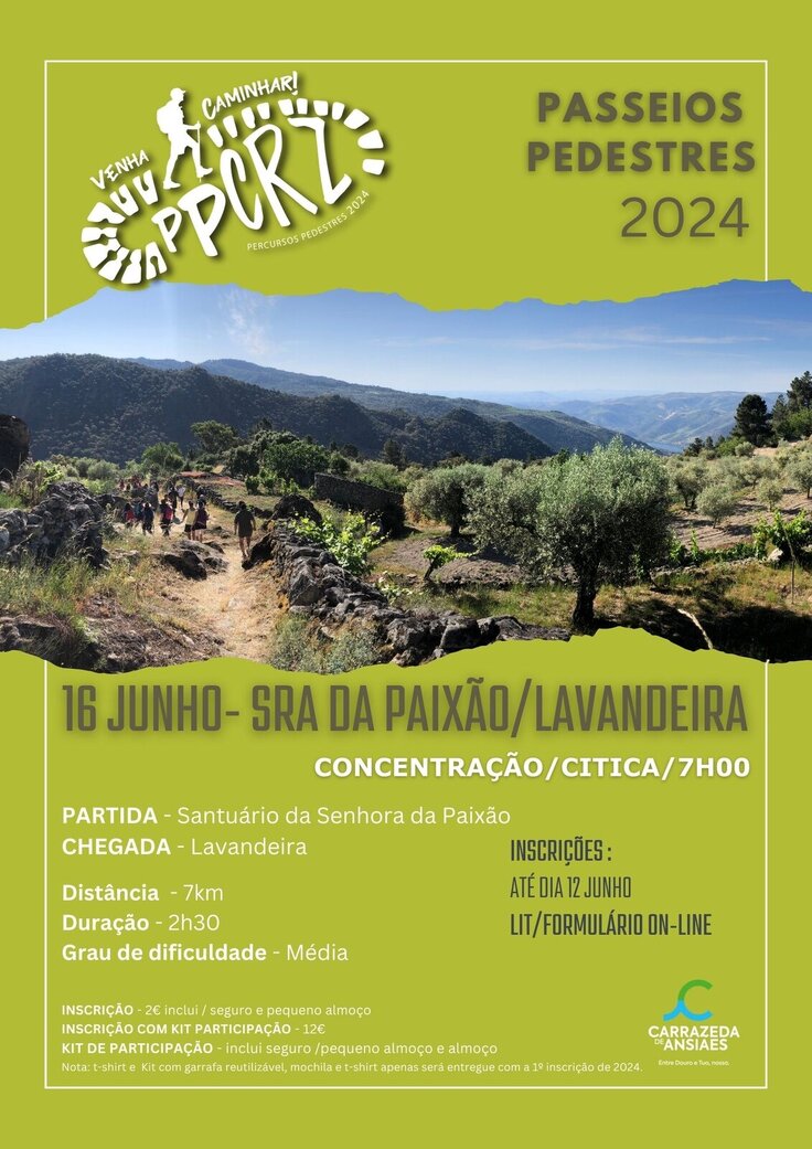 Não se esqueça que no dia 16 de junho vai realizar-se mais uma caminhada, com partida do Santuário de Nossa Senhora da Paixão e chegada à Lavandeira.