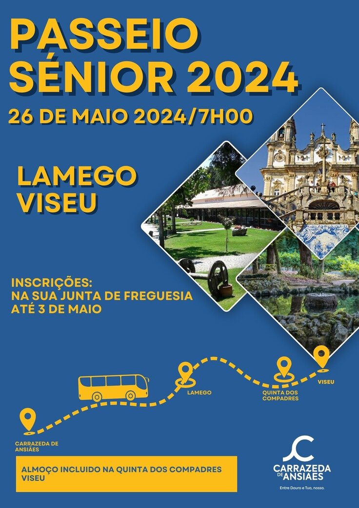 Passeio anual destinado aos séniores residentes no concelho de Carrazeda de Ansiães. em 2024 o passeio tem como destino as cidades de Lamego e Viseu.
