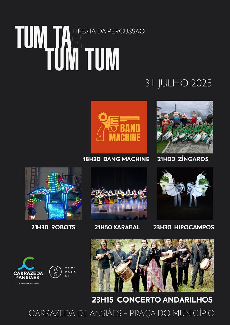 Festival Tum Tá Tum Tum, Festa da Percussão tem por objetivo maior criar um evento cultural diferenciador e capaz de projetar o nome de Carrazeda de Ansiães como destino cultural, numa perspetiva de continuidade anual.