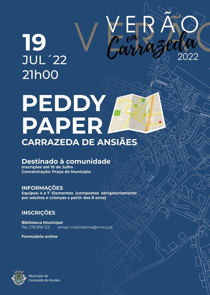 Inserido no "Verão em Carrazeda", a 19 de julho realiza-se o Peddy Paper noturno. A atividade inicia-se às 21h00 na Praça do Município e destina-se a toda a comunidade.