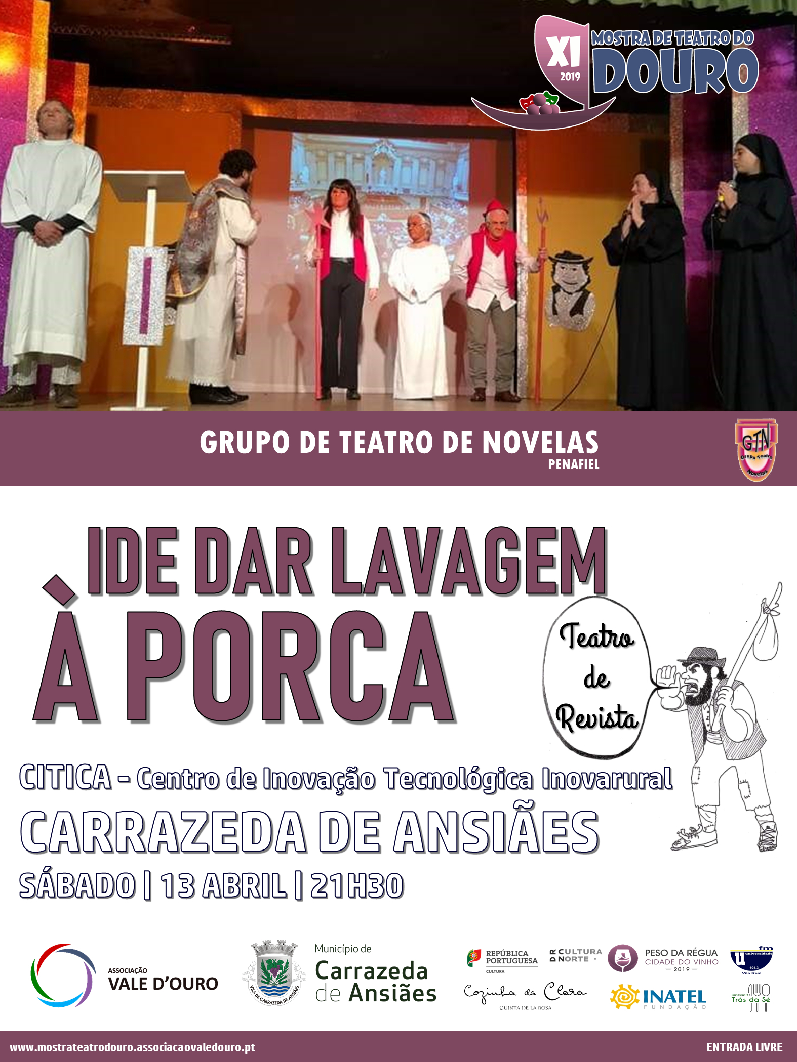 No âmbito da XI Mostra de Teatro do Douro, promovida pela Associação Vale Douro, vai ser encenada no auditório do CITICA de Carrazeda de Ansiães, no dia 13 Abril, pelas 21h30, a peça de Teatro "Ide dar Lavagem à Porca" do Grupo de Teatro de Novelas (Penafiel)