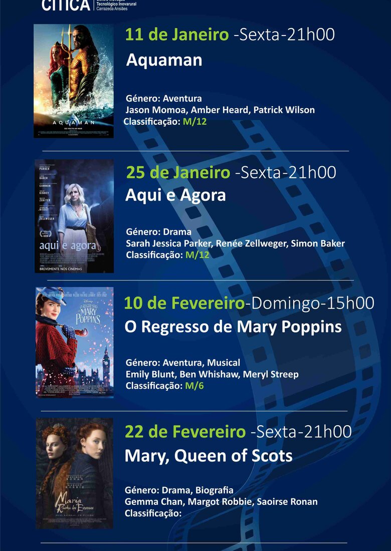 Cartaz do cinema - Janeiro e Fevereiro 2019