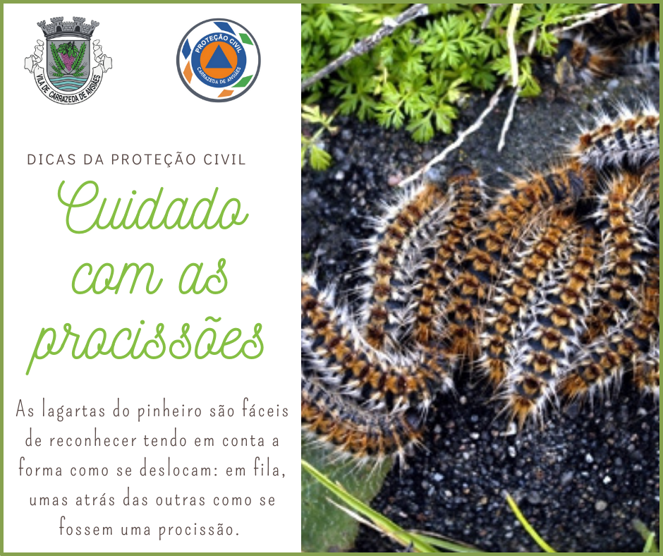 Geralmente entre os meses de janeiro a abril, as lagartas do pinheiro descem dos seus ninhos e começam as suas típicas procissões, para encontrarem um lugar onde se enterrarem e assim seguirem o seu ciclo de vida.
