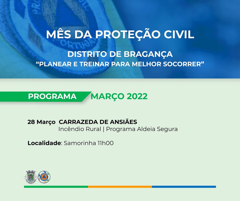 No âmbito do mês da Proteção Civil 2022 do distrito de Bragança, Carrazeda de Ansiães vai ser palco de um teatro de operações num exercício de incêndio rural, inserido na Aldeia Segura, Pessoas Seguras.