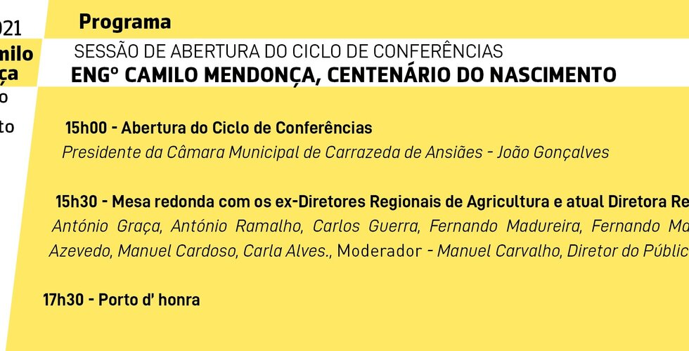 A Sessão que dá início ao ciclo de conferências, do centenário de nascimento do Eng.º Camilo Mendonça, tem lugar dia 7 de julho, pelas 15h00 no Auditório do Centro de Inovação Tecnológica Inovarural de Carrazeda de Ansiães (CITICA).