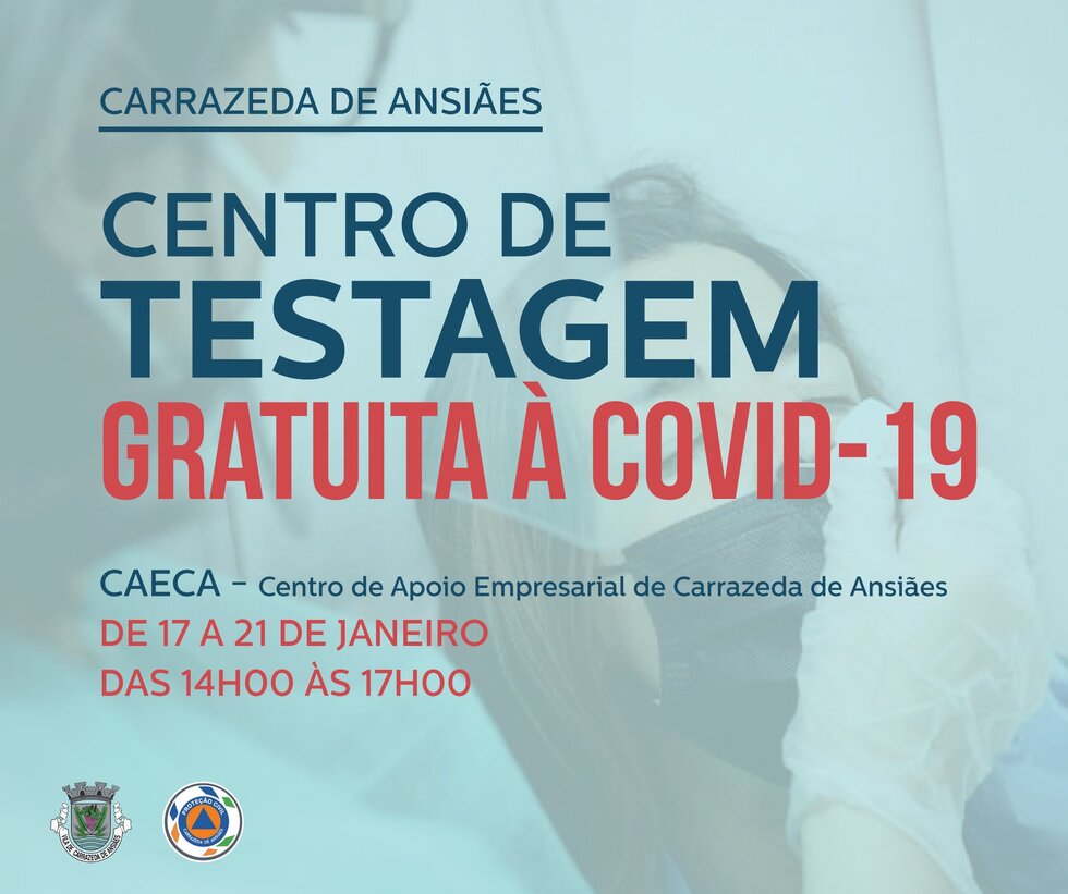 Informa-se os munícipes, de que a partir dos dias 17 a 21 de janeiro de 2022 dá-se continuidade à testagem (teste antigénio) gratuita nas instalações do Centro de Apoio Empresarial de Carrazeda de Ansiães.
