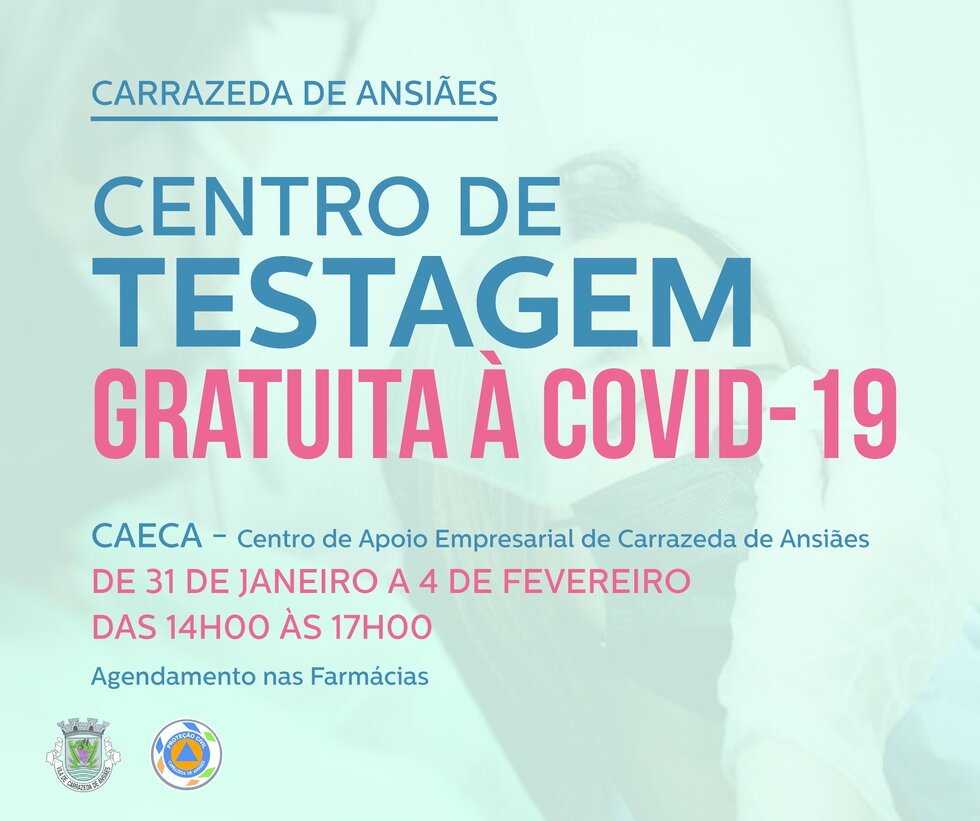 Informa-se os munícipes, de que a partir dos dias 31 de janeiro a 04 de fevereiro de 2022 dá-se continuidade à testagem (teste antigénio) gratuita nas instalações do Centro de Apoio Empresarial de Carrazeda de Ansiães.