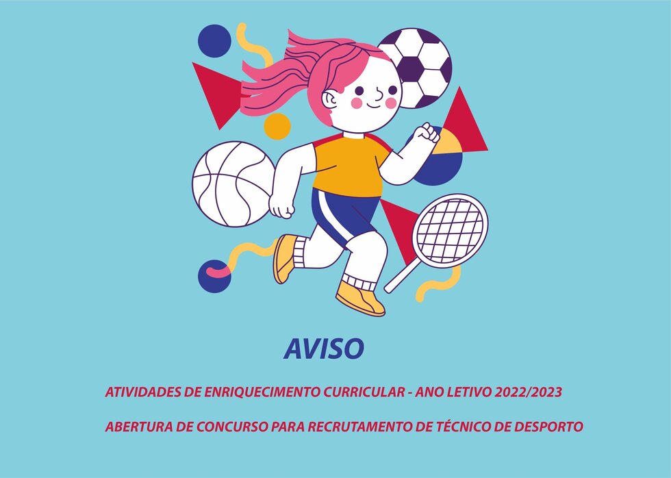 Ao abrigo no estipulado Decreto-lei nº 212/2009, de 3 de setembro, alterado pelo Decreto-lei nº 169/2015, de 24 de agosto, e considerando a informação nº 17/2022, está aberto o procedimento para recrutamento de um técnico de desporto para assegurar as AEC's dos alunos do 1º ciclo.