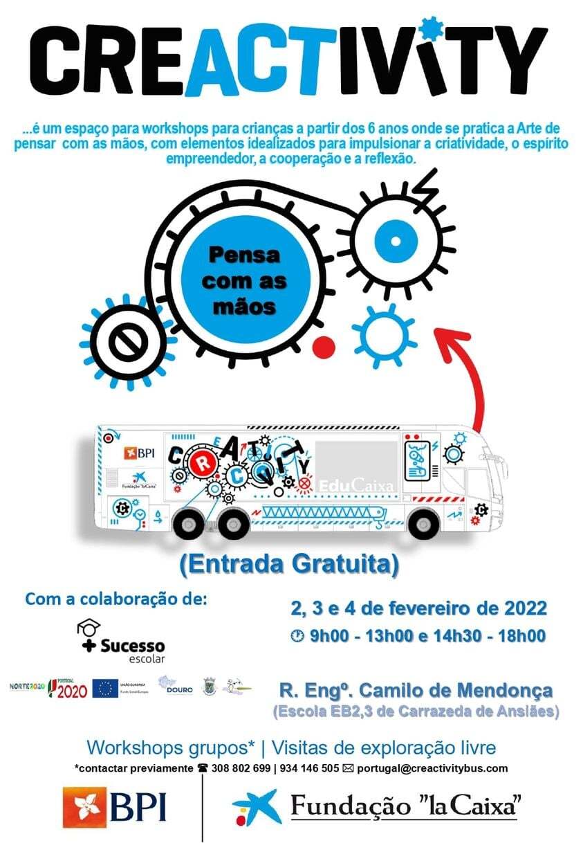 No âmbito das atividades da Equipa Multidisciplinar PIICIE, em parceria com a Fundação La Caixa e o Agrupamento de Escolas, o "Creactivity Bus” visita Carrazeda de Ansiães entre os dias 2 a 4 de fevereiro.