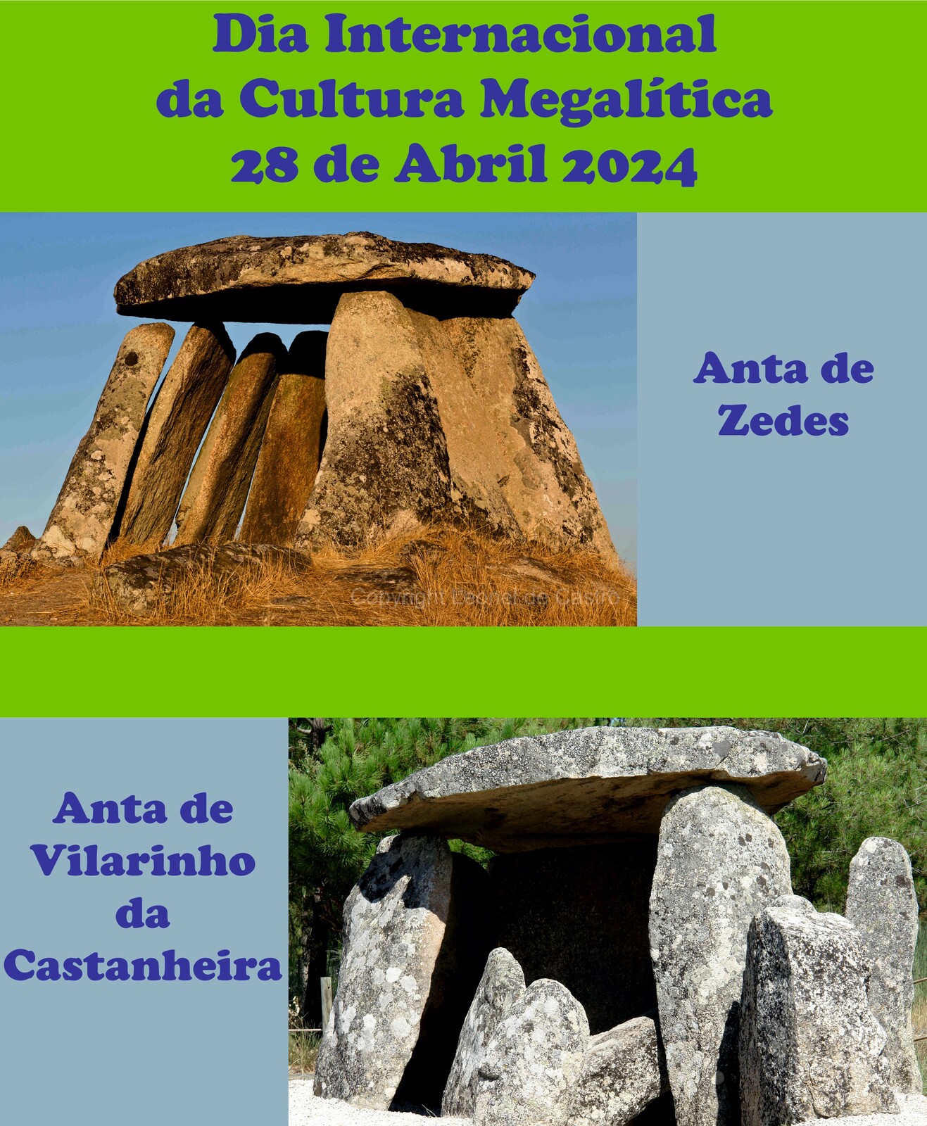 O Dia Internacional da Cultura Megalítica celebra-se no último domingo de abril de cada ano, em 2024 em torno do tema o Megalitismo e Marcas na Paisagem.