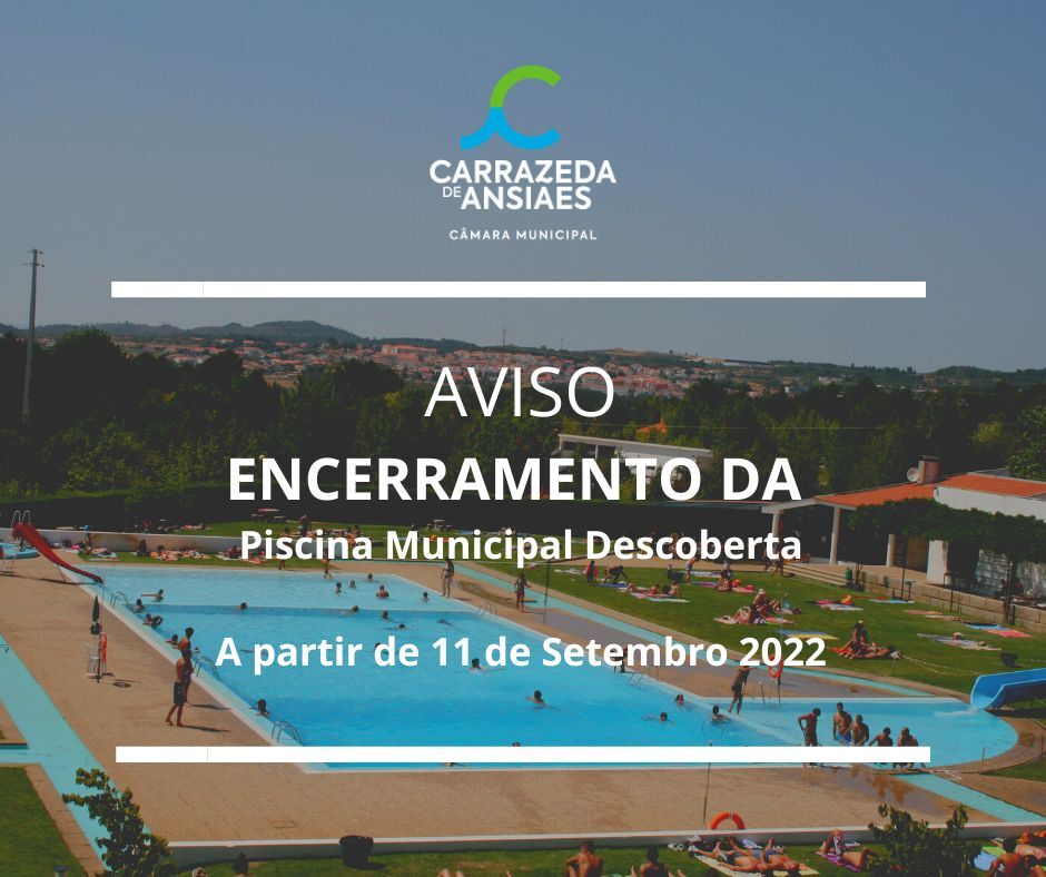 O Município de Carrazeda de Ansiães informa que a Piscina Municipal Descoberta vai encerrar a partir de domingo dia 11 de setembro.