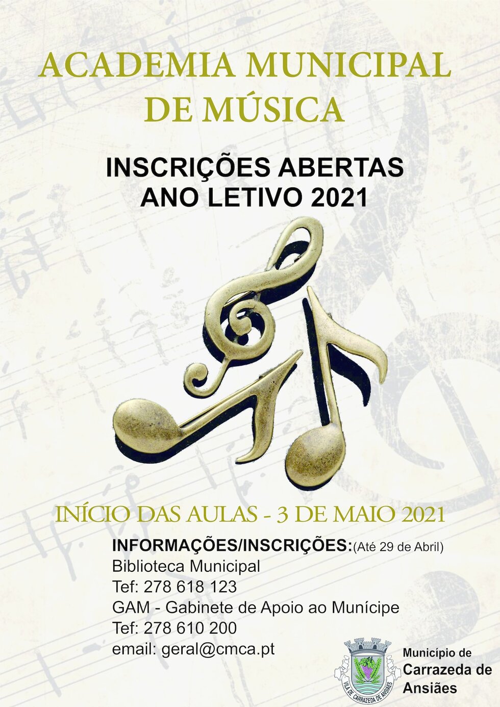 O Município informa que as inscrições para a Academia Municipal de Música já se encontram abertas.