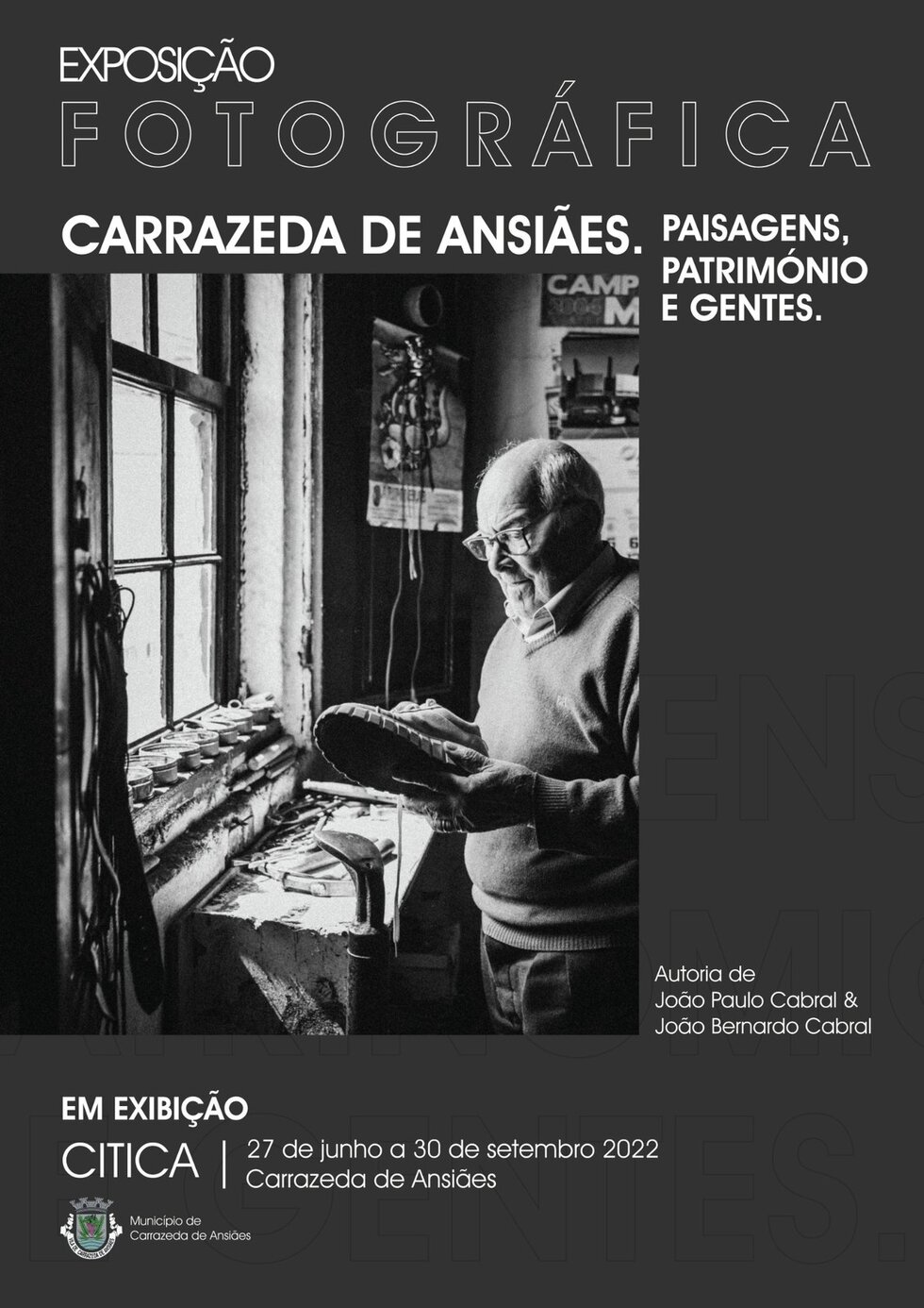 Vai estar patente, entre o dia 29 de Junho e o dia 30 de Setembro, na Salas de Exposições Temporárias do CITICA (Centro de Inovação Tecnológica INOVARURAL de Carrazeda de Ansiães), a Exposição Fotográfica intitulada “Carrazeda de Ansiães. Paisagens, Património e Gentes", da autoria de João Paulo Cabral e de João Bernardo Cabral.
