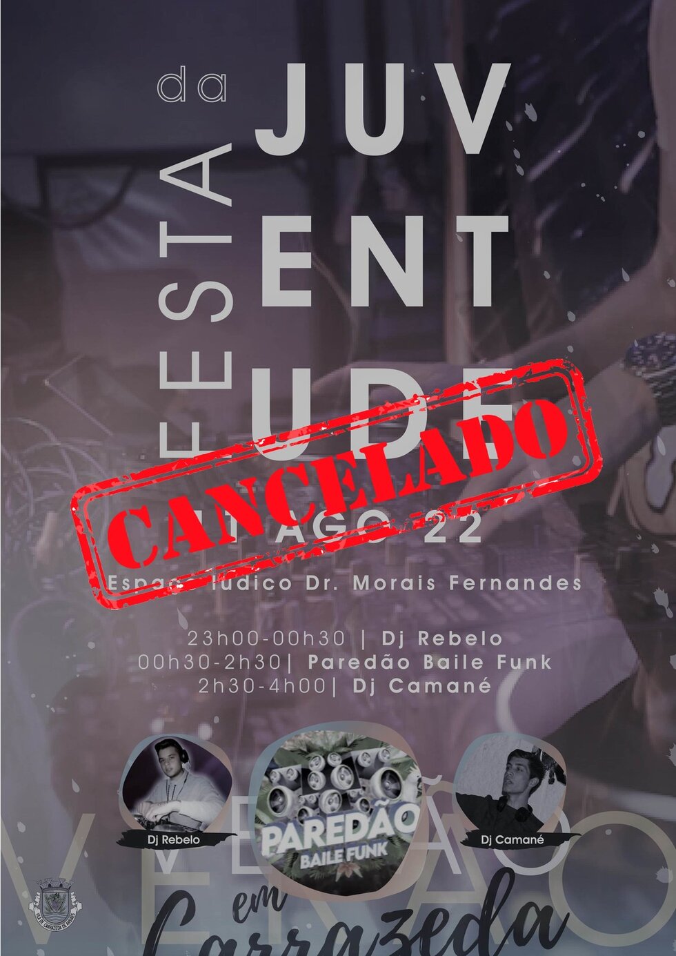 O Município de Carrazeda de Ansiães vem por este meio informar que a Festa da Juventude que teria lugar no próximo dia 11 de agosto, se encontra cancelada.
